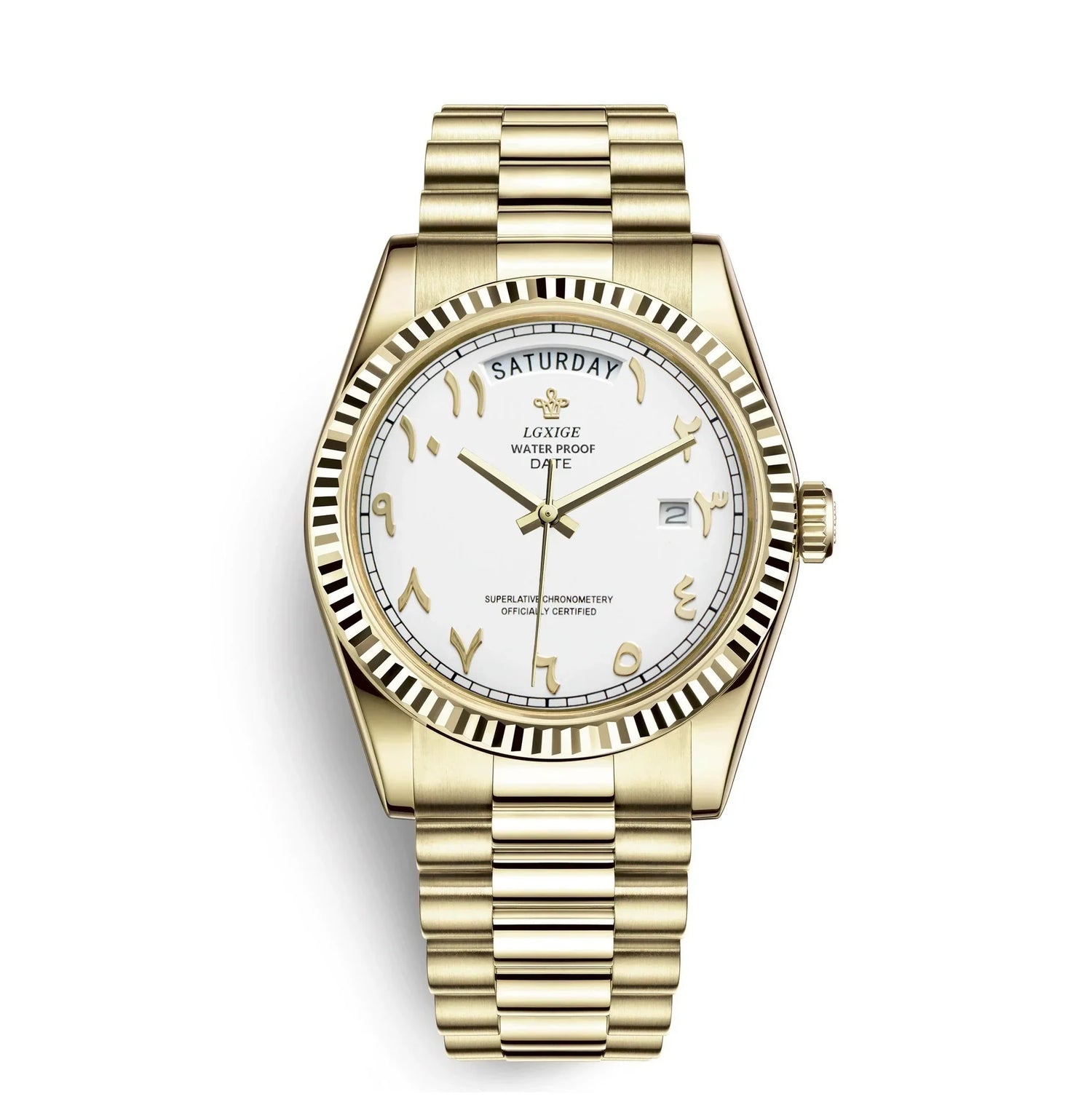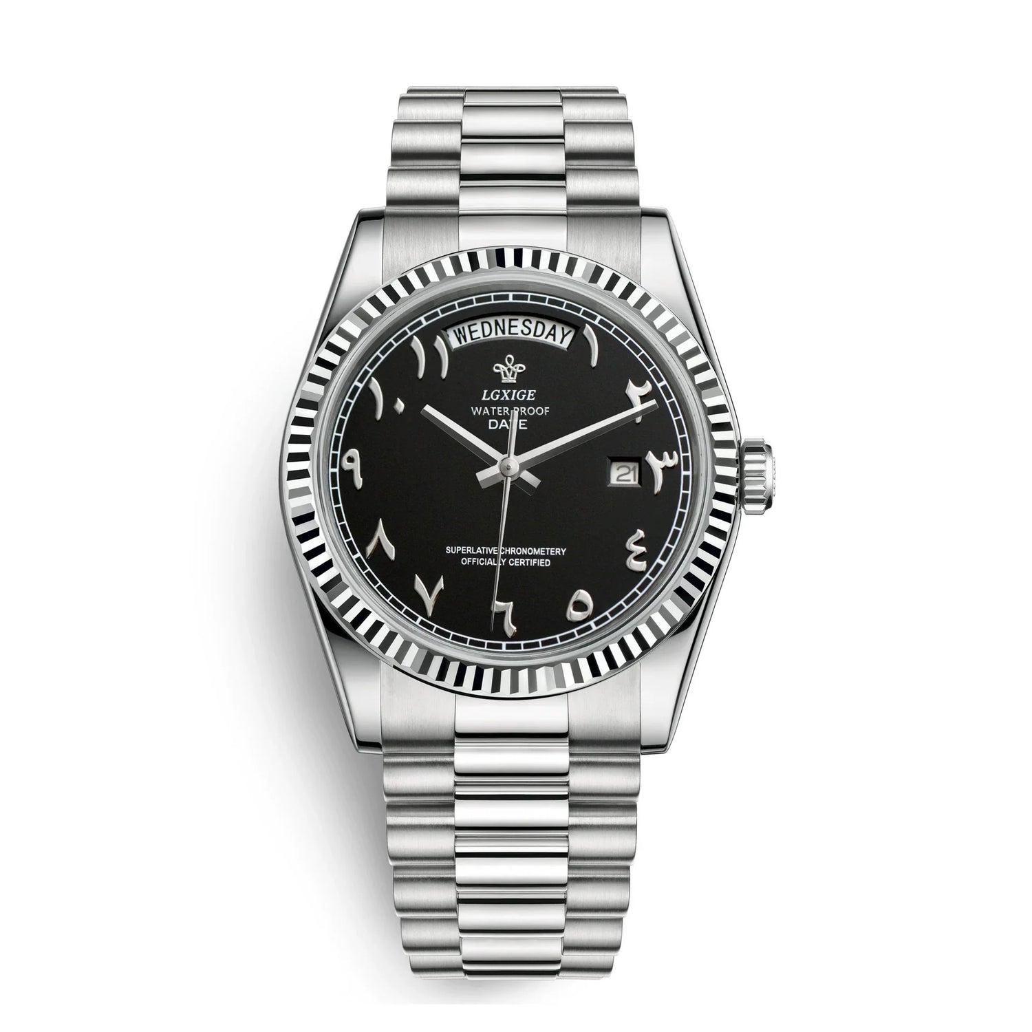 The high-polish details of the case, bracelet and fluted bezel create a stunning brilliance that is guaranteed to attract compliments.