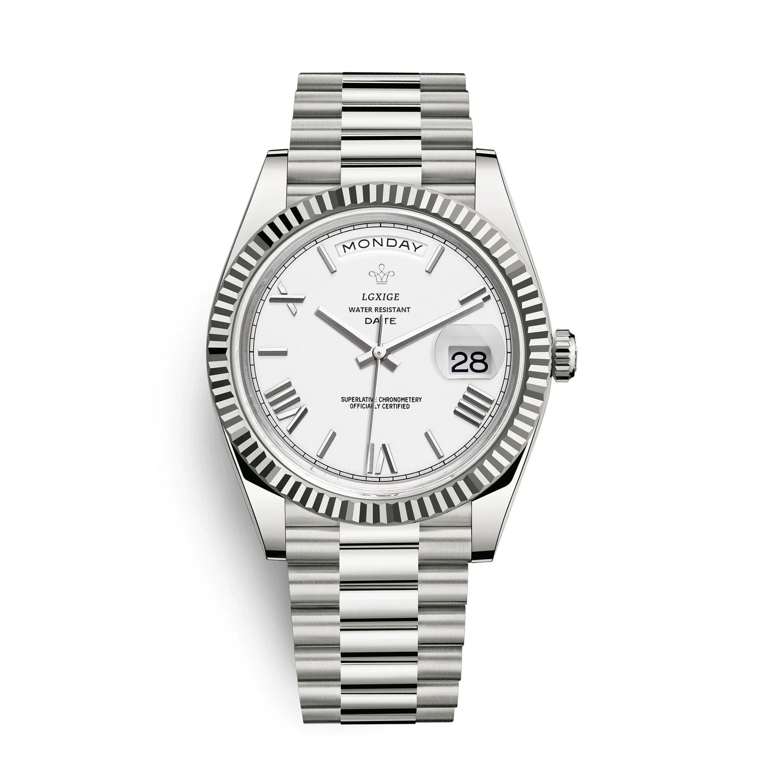 The high-polish details of the case, bracelet and fluted bezel create a stunning brilliance that is guaranteed to attract compliments.