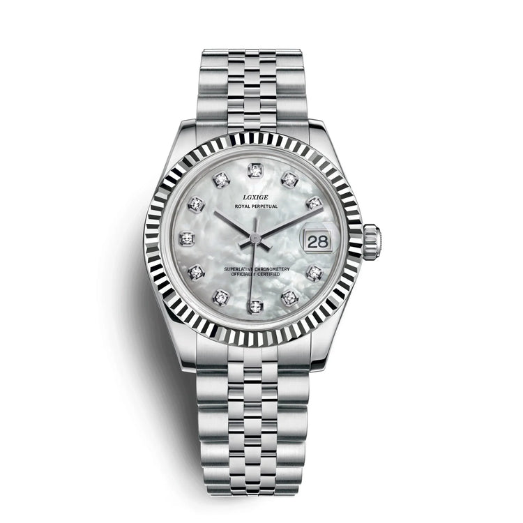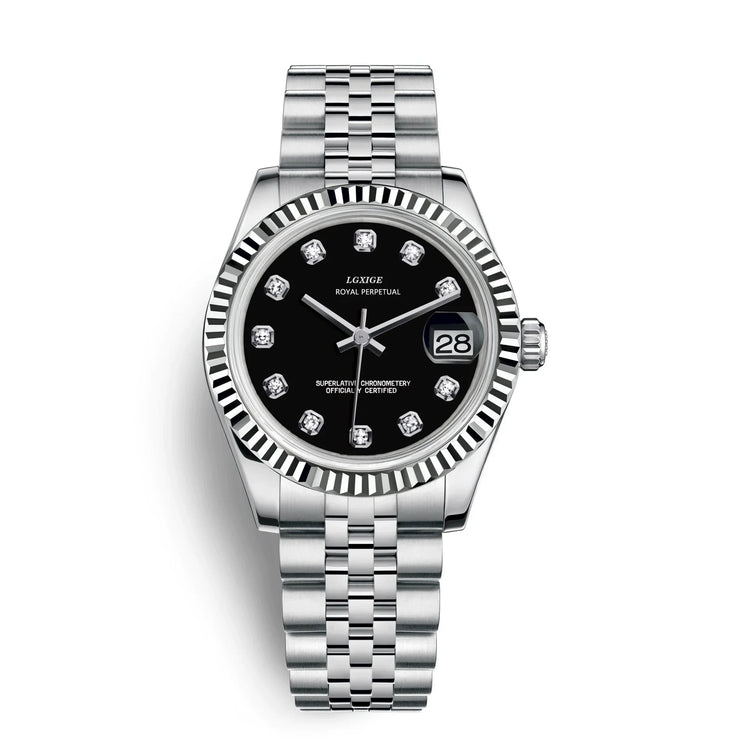 The high-polish details of the case, bracelet and fluted bezel create a stunning brilliance that is guaranteed to attract compliments.